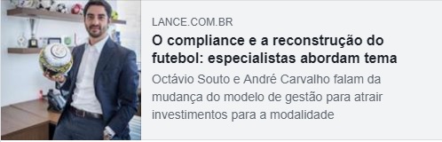 Octávio Souto Vidigal Filho e André Sica, do CSMV Advogados, nosso cliente em comunicação, tiveram artigo sobre compliance publicado no LANCE, uma das maiores audiências do mundo esportivo. ”Para iniciar a estruturação de um programa de compliance é fundamental que se compreenda as particularidades da entidade e seu setor de atuação.” Leia na íntegra clicando aqui.