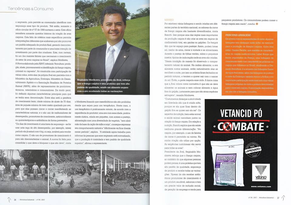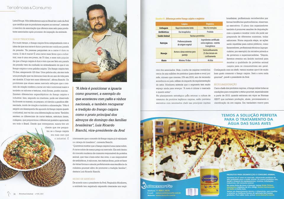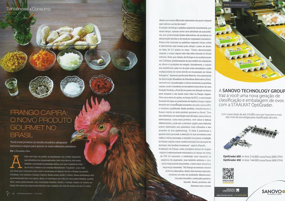 A Revista Avicultura Industrial tem uma matéria bem interessante da Fernanda Oliva sobre a valorização do frango caipira e das estratégias para transformar a iguaria em um produto gourmet no Brasil. A matéria contou com entrevista dos nossos clientes em assessoria Luiz Ricardo Bianchi, da Família Bianchi, e do Reginaldo Morikawa, presidente da Associação Brasileira de Avicultura Alternativa – AVAL. Veja: