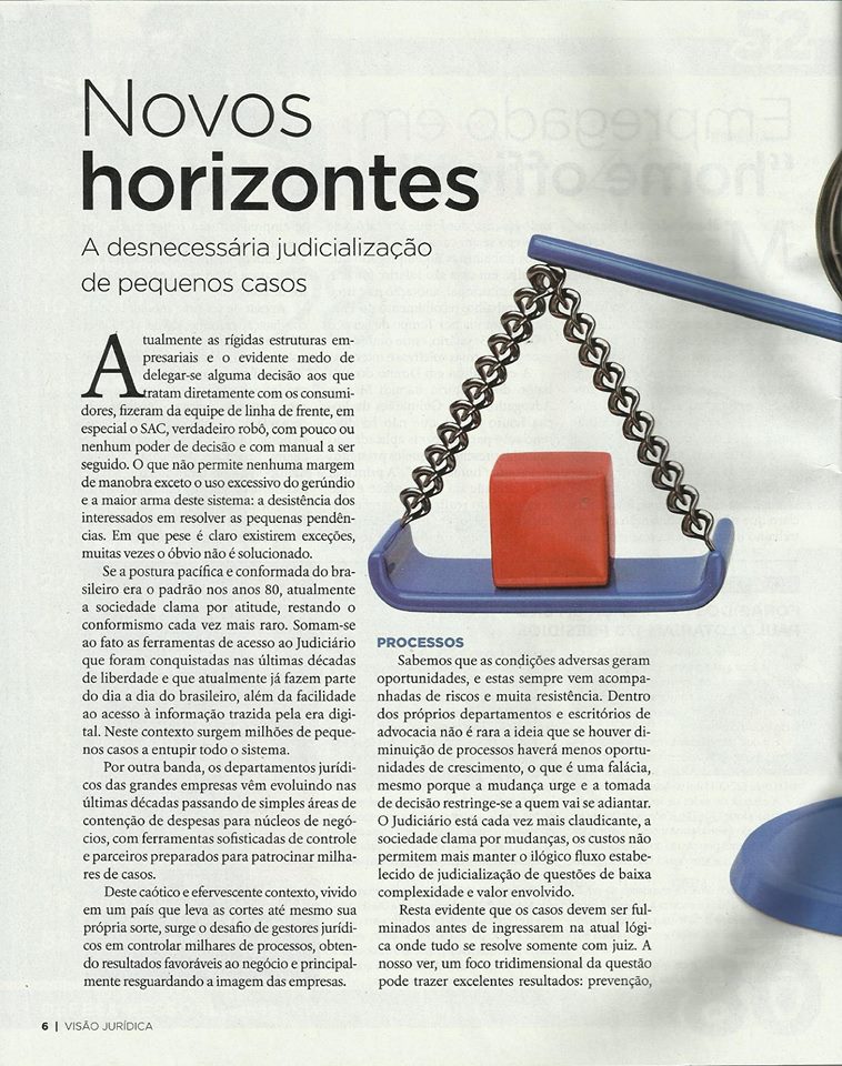 Rafael Olimpio Silva de Azevedo, sócio do escritório Olimpio de Azevedo Advogados, escreveu para a revista Visão Jurídica. Nele, o advogado aponta os caminhos para solução de pequenos casos sem a necessidade de judicialização. Confira o artigo abaixo: